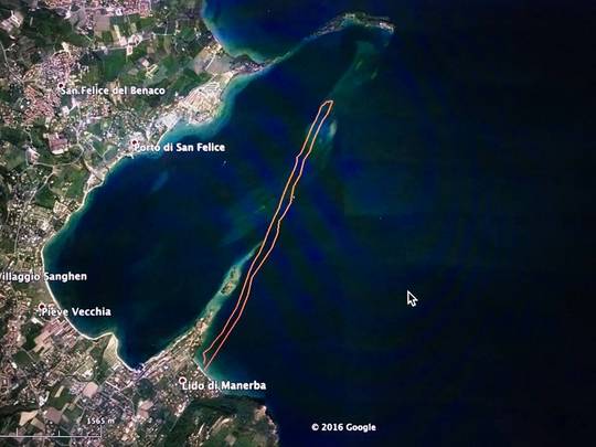 Passiamo all’azione. Ci troviamo al Covo alle 08:00 io e Tato. Cominciamo a caricare la furgonetta e siamo rapidamente in viaggio verso il lago di Garda. Arrivati sulla spiaggetta ci accoglie una giornata nebbiosa, senza sole e con una brezza fredda e fastidiosa. Nemmeno riusciamo a vedere l’isola che dovrebbe farci da primo punto di riferimento.