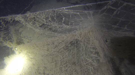 La rete da perfettamente orizzontale ora inizia a scendere in profondità e mi chiedo quanta ce ne sarà ancora… non avevamo idea fosse così lunga. Alla fine, dopo un centinaio di metri, finalmente la rete termina e noi possiamo iniziare la salita.